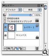 しかし,Painter8のレイヤーは,Photoshopと同様に,レイヤーの透過度とは別にレイヤーマスクと呼ばれる8bitのアルファチャンネルを持ちましたので,これまでとはまったく異なる使い方が可能になり,いろいろと効果的な合成が可能になります。