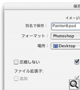 Painterはずっと以前からPhotoshopファイル形式をサポートしており,以前からレイヤーやCMYKモードに対応しておりましたが,Photoshopファイルの圧縮まではサポートしていませんでした(Photoshopで保存したpsdファイルは圧縮されています)。そのため,Painter7以前,Photoshopファイル形式で保存すると,膨大なファイル容量となってしまいましたが,Painter8からは改善されています。ささいなことですが,非常に大きな機能向上です。