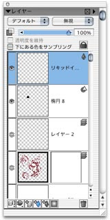 レイヤー機能に搭載されたのは,レイヤーマスクだけではありません。まず,Painter7まではオブジェクトと呼ばれるパレットグループのなかのひとつに過ぎなかった「レイヤーパレット」が独立して表示できるようになりました。独立して表示した場合は,レイヤーパレットサイズを縦横自由に調節できるため,一度に多くのレイヤー数を表示できます。また,サムネイル表示も追加され,サムネイルサイズは小・中・大の3種類から選べます。