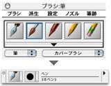 Painter伝統の,「任意に複数のブラシを前面に出しておき適宜持ち変える」という機能がなくなりました。鉛筆で線をひいていて,消しゴムを使いたくなったら,常にプルダウンメニューを表示させ,リストのなかから消しゴムを選択せねばならなくなりました。