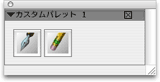 Painter8.1(アップデートが必要です)よりカスタムパレット機能が復活しました。よく利用するブラシやマテリアルを、カスタムパレットに登録することでプルダウンメニューから選択する必要がなくなり、ある程度、Painter7以前のパレットに近い操作感覚となります。
