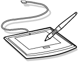 タブレットは,一般的にUSBなどでコンピュータと接続するタブレットボードと,ペンで構成されています。