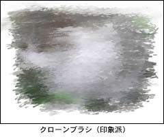 これは「効果」ではなく「ブラシ」の一種ですが簡単に紹介します。タブレットやマウスでキャンバスをなぞるだけで印象派の絵画に変更できる「クローンブラシ」を利用した画像です。クローンブラシは,すべてのブラシで利用できるので,水彩や油彩,ゴッホタッチ,スーラタッチなど,ありとあらゆる画風を表現することが可能です。また,簡単にゴッホの画風を再現する「自動ヴァン・ゴッホ」などもあります。