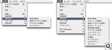 左が『Painter Essentials 2』。右が『Painter IX』のものです。 効果の種類が多い事,そして別売の追加プラグインで拡張できることが特徴です。