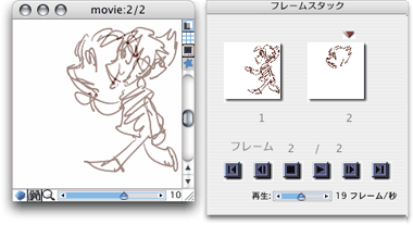 パラパラマンガのように絵を描いていきます。オニオンスキン機能も利用可能です。