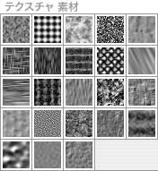 テクスチャは,デフォルトで,こんなにたくさんの種類が収録されています。また,Extraとして,これ以外にも登録できる追加テクスチャが収録されていますし,もちろん自作することも可能です。