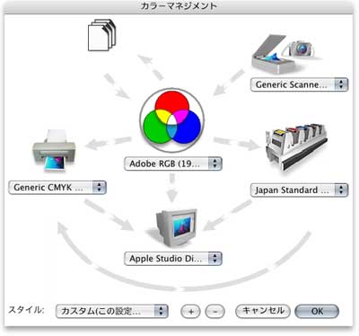 『Photoshop』や『Illustrator』と色調をあわせることも簡単にできますし,ディスプレイやプリンタのカラープロファイルを読込んで設定することもできます。設定画面も直観的で理解しやすいよう工夫されています。