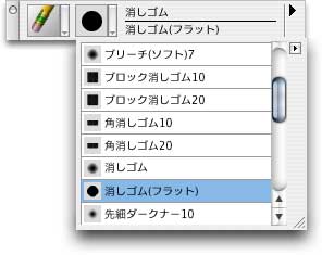 『Painter』の消しゴムは非常に多くのバリアントが含まれ,多機能ですが,残念ながら万能な消しゴムで,鉛筆だろうと油彩だろうと,ほとんどすべての線が消せてしまいます。ペンの線を残し,鉛筆の線だけを消すような作業を行う場合,あらかじめ鉛筆の線はレイヤーをわけて描いておくなど,作業上の工夫を施さなければなりません。