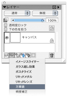 万華鏡を適用したらアクティブレイヤーをキャンバスに変更してください。キャンバスに描画されたものが万華鏡を通して表示されるようになります。