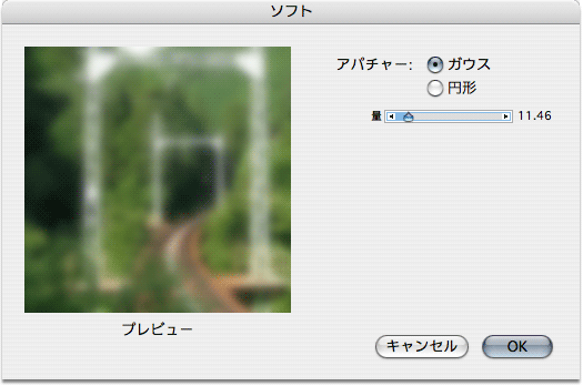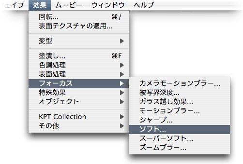 レイヤー化した画像に"効果","フォーカス"の"ソフト"を適用します。