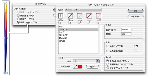 続いて新規アートブラシを登録します。先ほど「新規パターンブラシ」に作成した元データを時計回りに90度回転させ,同様に「アートブラシ」として登録します。これを「花火アートブラシ」と名付けます。