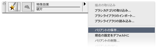次に「新しいブラシをつくるための準備」をします。まず、もととなる「特殊効果」の「破片」を選択し、「バリアントの保存...」を行います。
